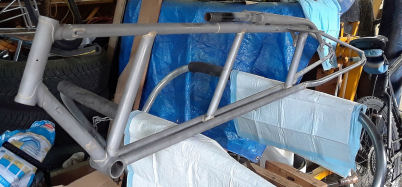 After riding the Tour Easy replica on and off for 25 years I decided it was time to freshen it up. The first step was to strip the bike down, sandblast the frame and add some cable stops.